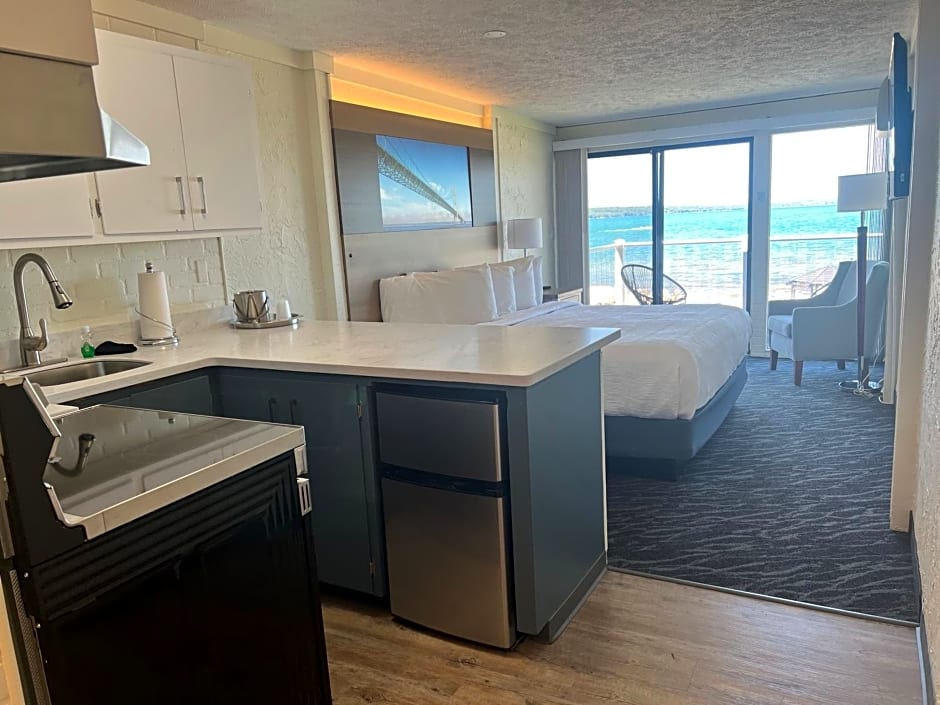 Offering a 55-inch flat-screen TV and free WiFi, this spacious 1st floor room includes a refrigerator, microwave and coffee maker. A private balcony or patio with a view of the bay are also provided.